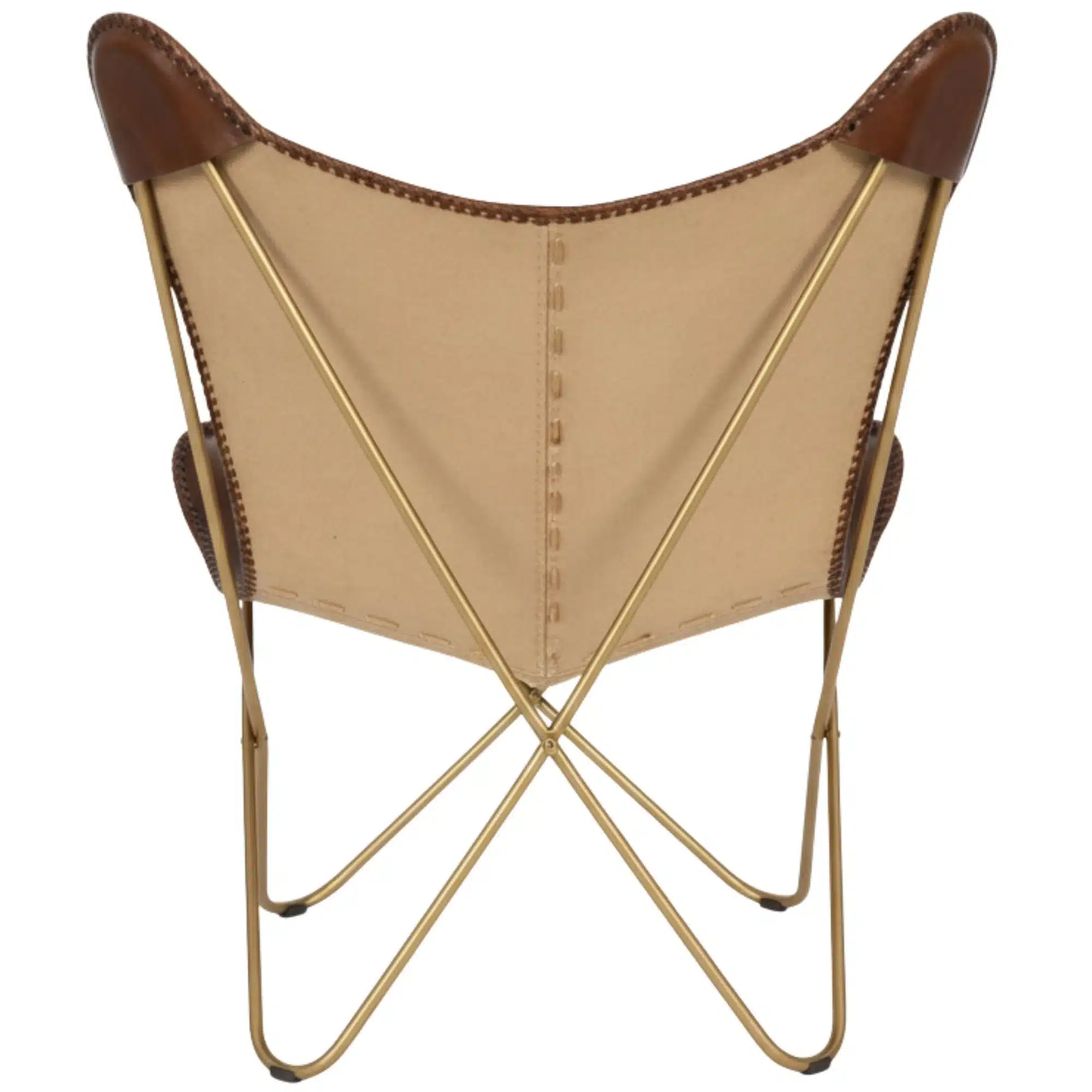 Dark Brown Chocolate Leather Handstitched Butterfly Chair with Golden Frame – Comfortable Seating for Elegance